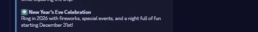 CPJ will host a major party on December 31st, celebrating our entrance into 2026 with a special party and fireworks. All CPJ players from worldwide will come to celebrate this massive achievement. The world has truly evolved, and CPJ couldn’t throw a single second away without celebrating the party on the last day of the year. Not many details are there,9: but you can already tell it is going to be a really big party. See you there!