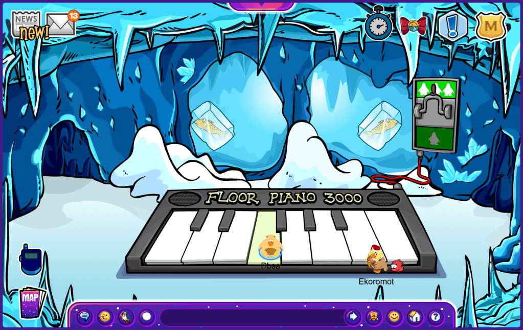 CPJ has added new things to the Mine, including a very fun mini-game and a mini piano. Both are really fun and are great additions to the game in the Holiday Jam update; they are both related to music. The Mine also got a perfect Christmas-looking theme in it, with ice spikes covering the entire room.