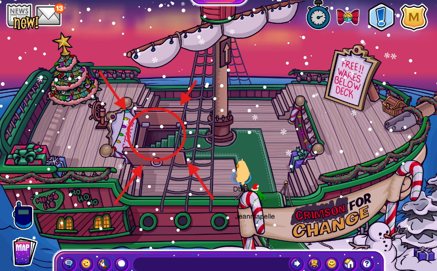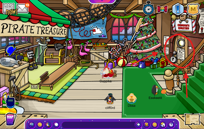Yes, you heard me right, Captain Crimson has returned to CPJ for the Holiday Jam update and is now aboard. You can check out his ship on the Beach and play his treasure hunt, or you can check out his new items. The Pirates are really raiding CPJ, huh? Come visit his ship and see what it has waiting for you!