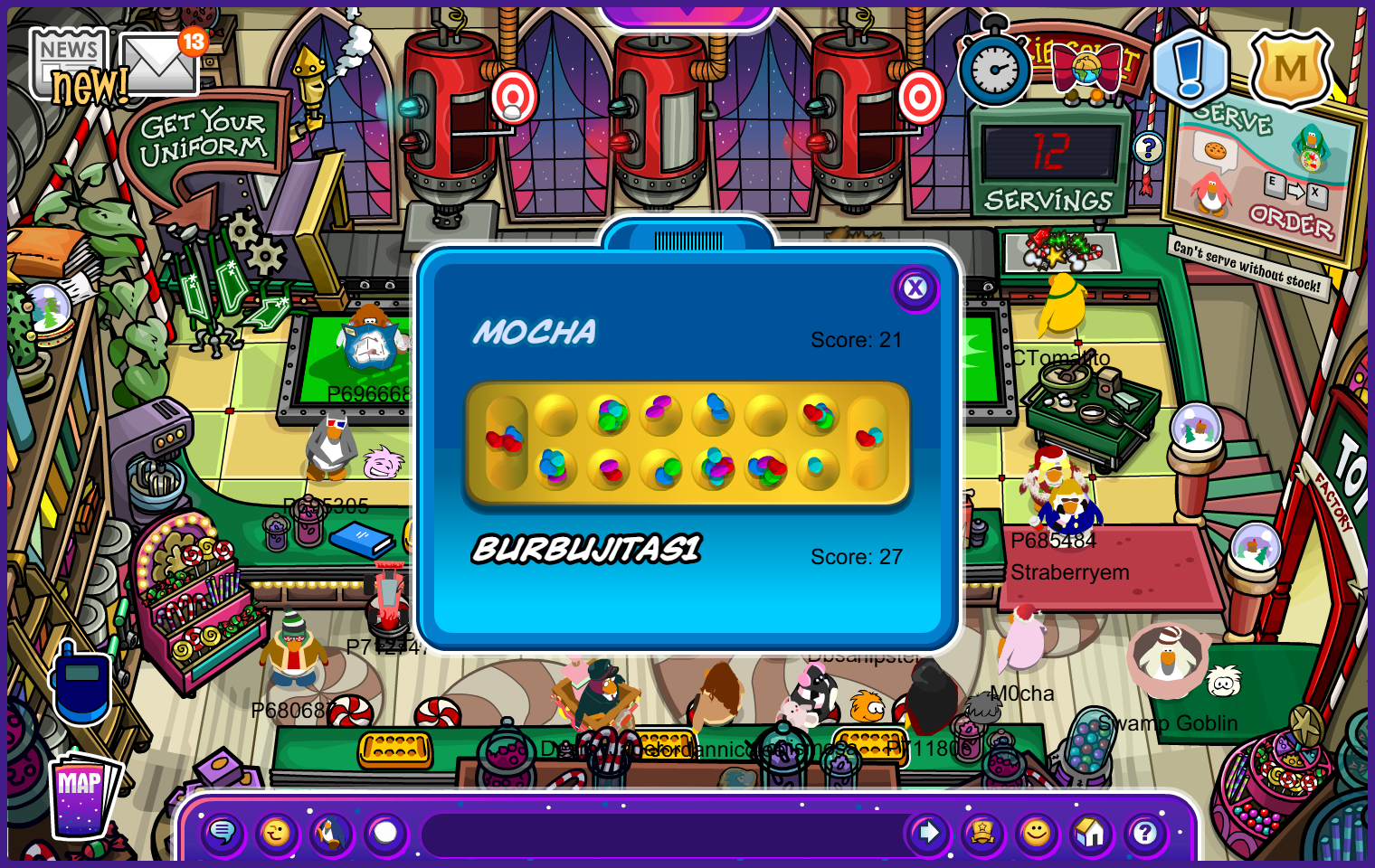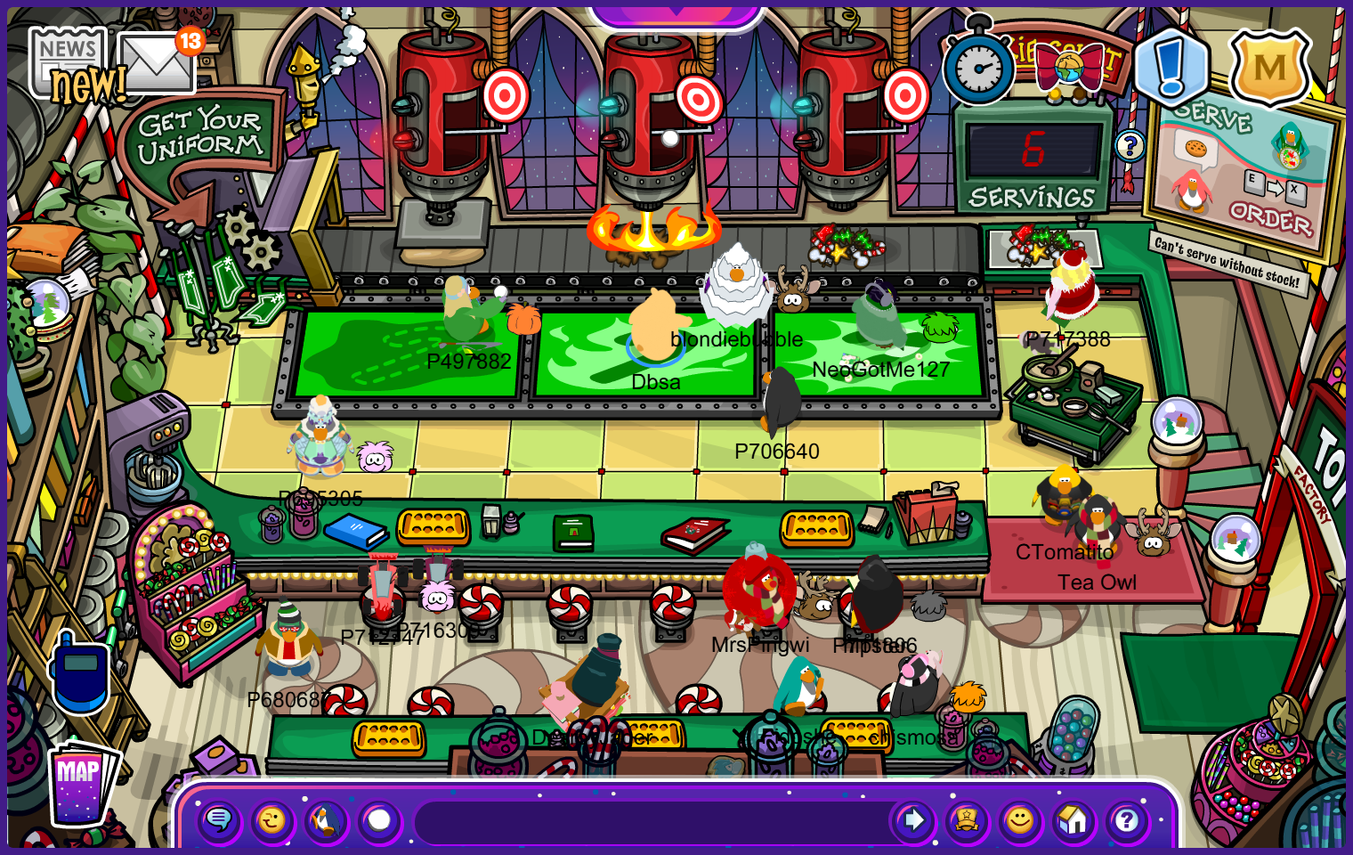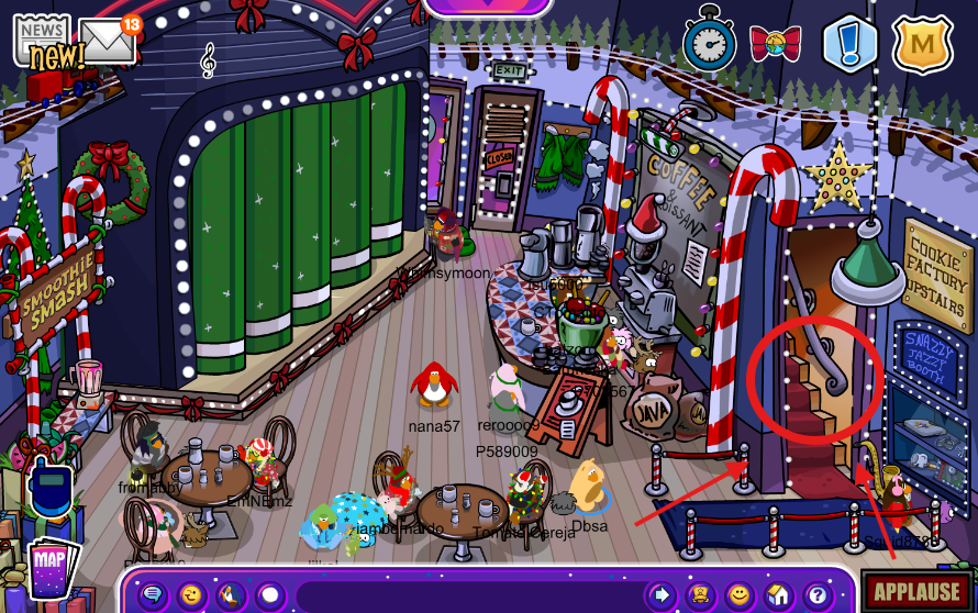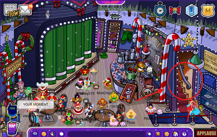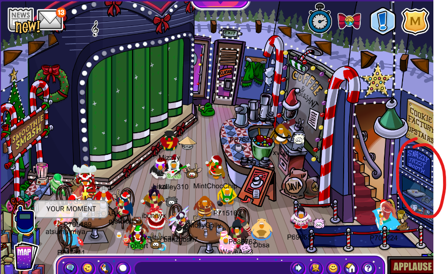 Yes, you heard me right, CPJ has added a cookie bakery recently. It is located on the upstairs of the Coffee Shop. It includes a mini-game, being about baking cookies; this can only be done with 3 players to activate the machine, so bring your friends and start playing! It is very simple and also fun; you just need to throw snowballs at the target and wait for your next teammate to do the rest of the process. It consists of 3 jobs.