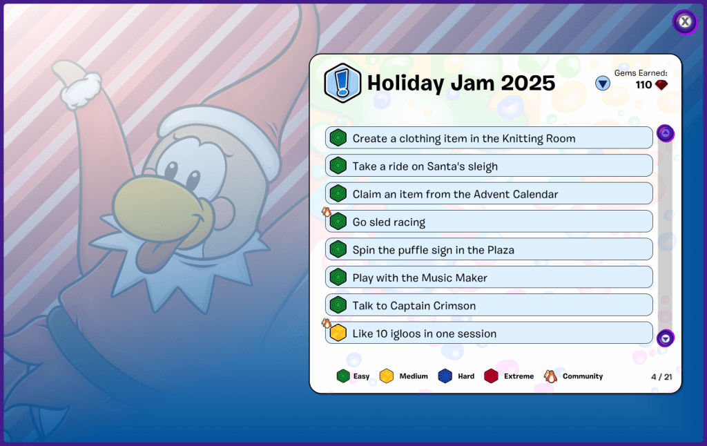 While you can play the mini-game, you can also just sit there in peace and read the new in-game books CPJ made! Like Puffle Pal Adventures, Christmas on RockHopper Island, and the Christmas Carol.