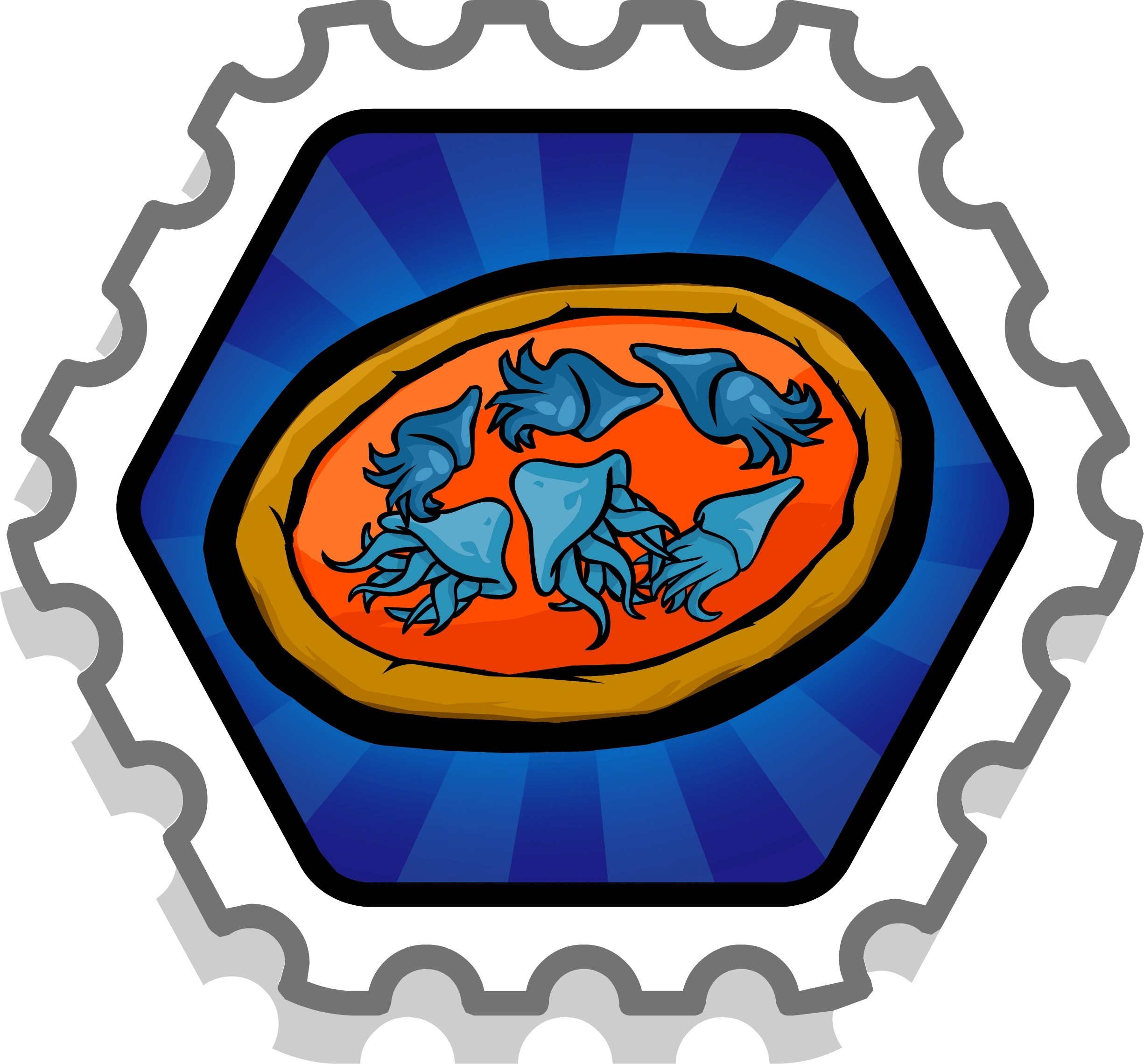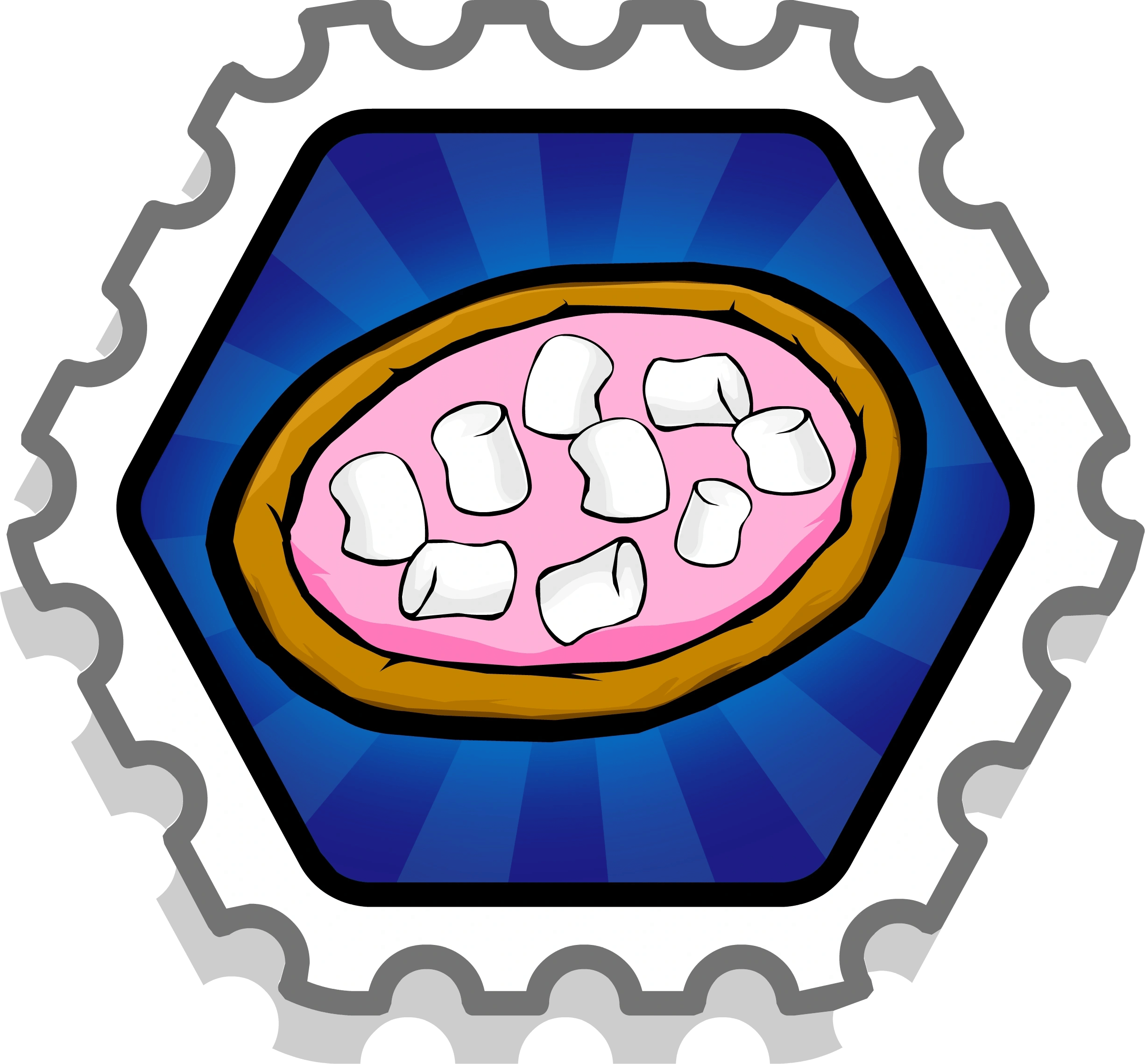 To get this stamp, you need to throw each individual topping (pizza sauce/chocolate sauce, hot sauce/pink icing, cheese/sprinkles, seaweed/licorice, shrimp/chocolate chips, squid/marshmallows, and fish/jelly beans), and make 3 of the wrong pizzas.