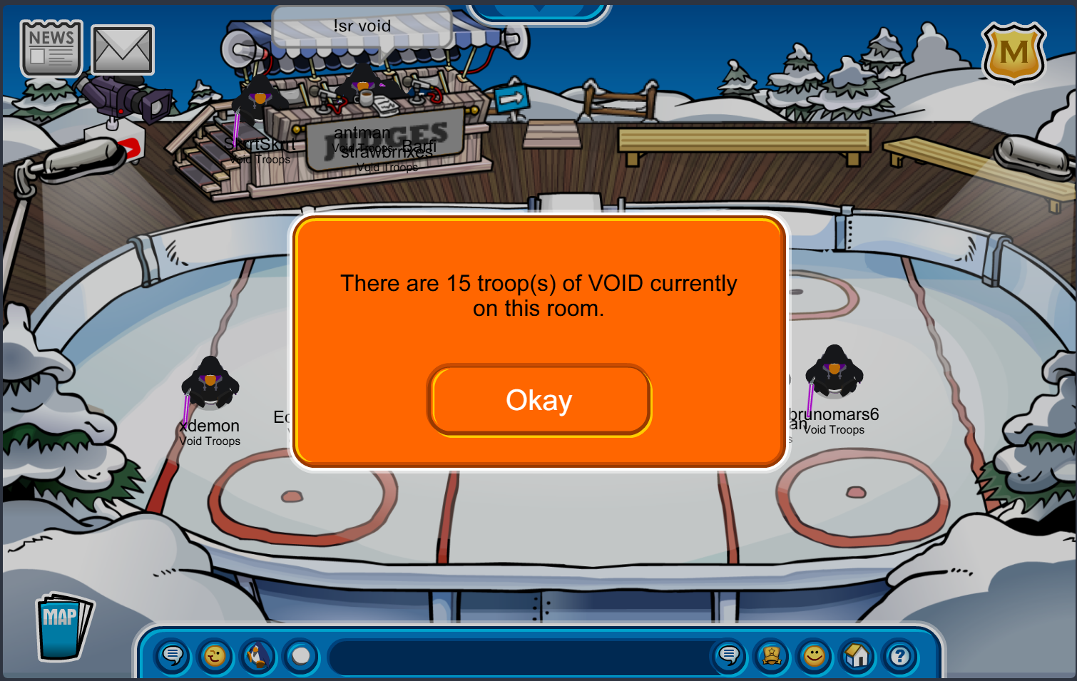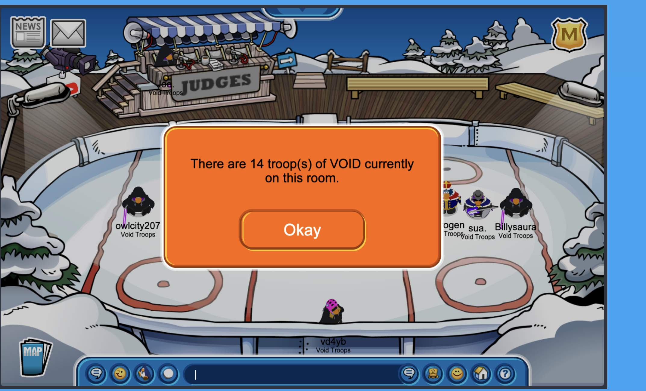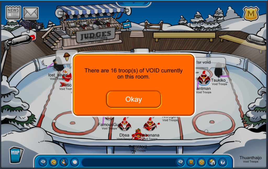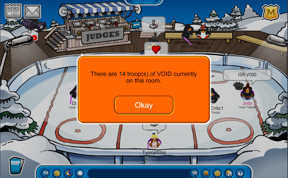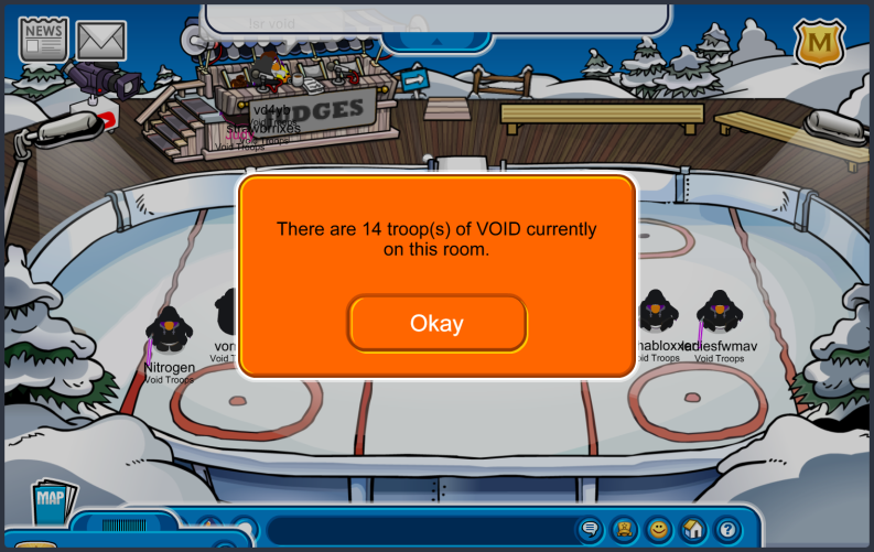 HI!!,Nitro here!today we logged into CPAB for UGLY-SWEATER-CONTEST!!(The ugliest penguin wins) RiRi was the winner of both rounds!!We maximized 15 void troops online!!