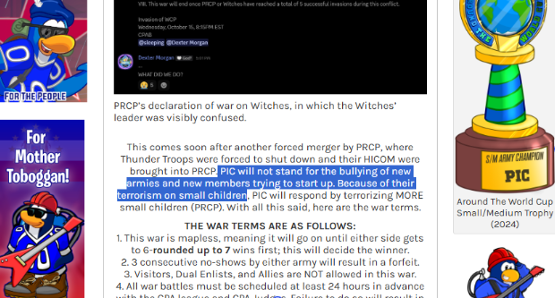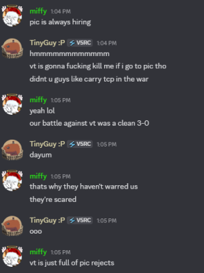 Armies to the likes of PIC do not deserve my effort, much less a post detailing their wrongdoings or the dishonor they have brought to both their legacy and the community as a whole. All that will be said is that they asked for this war, and we brought it to them.